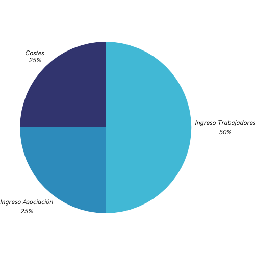 El reparto de los ingresos se destina al correspondiente pago de gastos asociados a nuestra actividad. Una parte se reinvierte en la asociación, pero el 50% se dedica a que los trabajadores puedan obtener el máximo salario posible